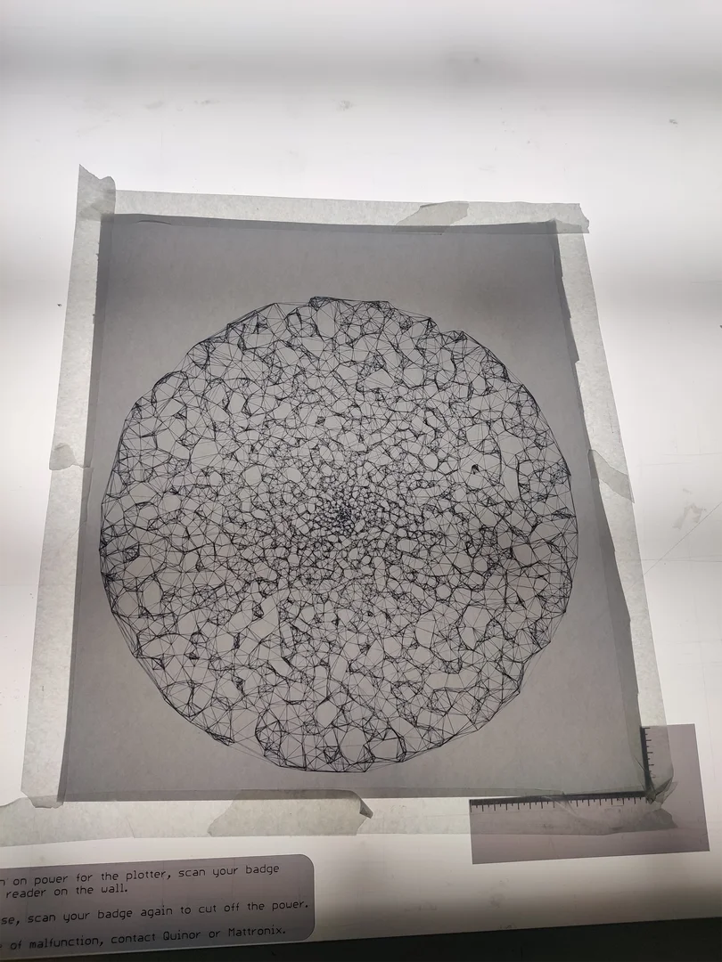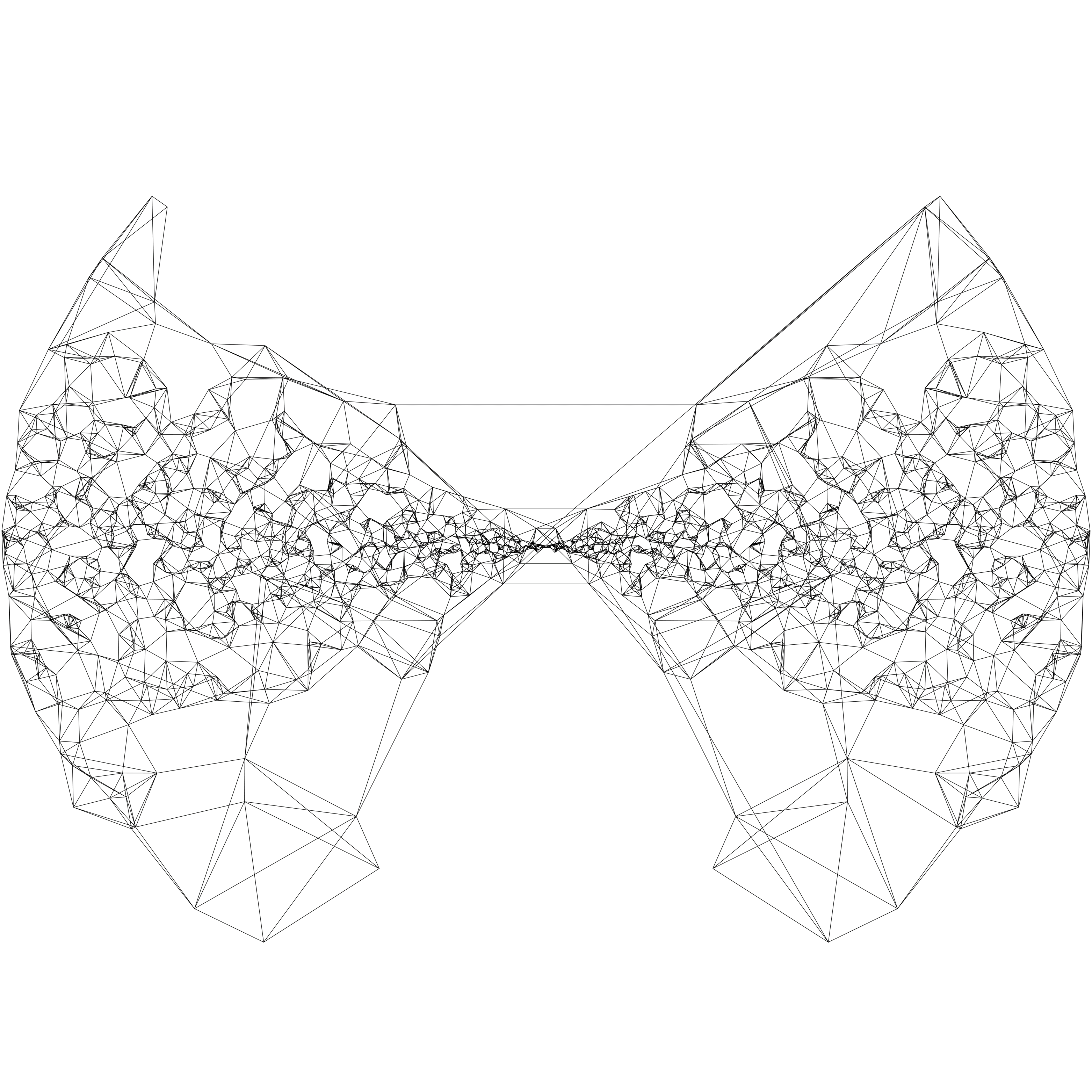 My first algorithmic art experiments. I use polar coordinates to get uniform (and in a half variation normal around the x-axis) random points on an increasing circle. After I have all these points I select one randomly and draw lines to the next closest neighbor that does not already have 4 connections with a max distance where it will eventually stop.